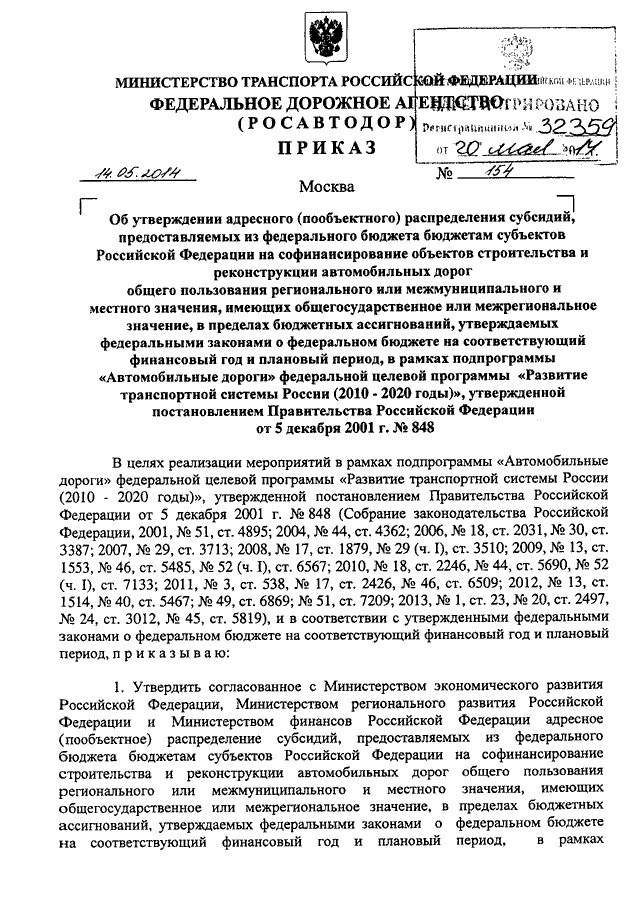 ПРИКАЗ Федерального дорожного агентства от 14.05.2014 N 154