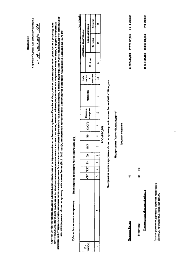"ОБ УТВЕРЖДЕНИИ АДРЕСНОГО (ПООБЪЕКТНОГО) РАСПРЕДЕЛЕНИЯ СУБСИДИЙ, ПРЕДОСТАВЛЯЕМЫХ ИЗ ФЕДЕРАЛЬНОГО БЮДЖЕТА БЮДЖЕТАМ СУБЪЕКТОВ РОССИЙСКОЙ ФЕДЕРАЦИИ НА СОФИНАНСИРОВАНИЕ ОБЪЕКТОВ СТРОИТЕЛЬСТВА И РЕКОНСТРУКЦИИ АВТОМОБИЛЬНЫХ ДОРОГ ОБЩЕГО ПОЛЬЗОВАНИЯ РЕГИОНАЛЬНОГО ИЛИ МЕЖМУНИЦИПАЛЬНОГО И МЕСТНОГО ЗНАЧЕНИЯ, ИМЕЮЩИХ ОБЩЕГОСУДАРСТВЕННОЕ ИЛИ МЕЖРЕГИОНАЛЬНОЕ ЗНАЧЕНИЕ, В ПРЕДЕЛАХ БЮДЖЕТНЫХ АССИГНОВАНИЙ, УТВЕРЖДАЕМЫХ ФЕДЕРАЛЬНЫМИ ЗАКОНАМИ О ФЕДЕРАЛЬНОМ БЮДЖЕТЕ НА СООТВЕТСТВУЮЩИЙ ФИНАНСОВЫЙ ГОД И ПЛАНОВЫЙ ПЕРИОД, В РАМКАХ ПОДПРОГРАММЫ "АВТОМОБИЛЬНЫЕ ДОРОГИ" ФЕДЕРАЛЬНОЙ ЦЕЛЕВОЙ ПРОГРАММЫ "РАЗВИТИЕ ТРАНСПОРТНОЙ СИСТЕМЫ РОССИИ (2010 - 2020 ГОДЫ)", УТВЕРЖДЕННОЙ ПОСТАНОВЛЕНИЕМ ПРАВИТЕЛЬСТВА РОССИЙСКОЙ ФЕДЕРАЦИИ ОТ 5 ДЕКАБРЯ 2001 Г. N 848"