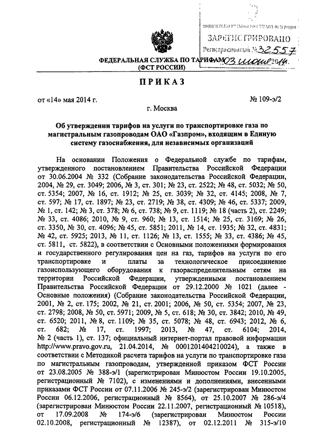 ПРИКАЗ ФСТ РФ от 14.05.2014 N 109-э/2