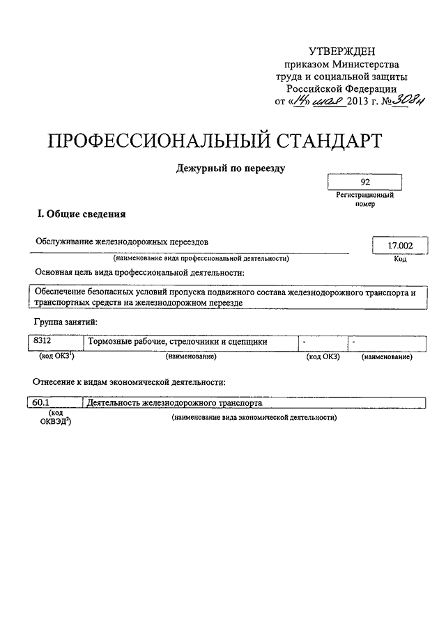 "ОБ УТВЕРЖДЕНИИ ПРОФЕССИОНАЛЬНОГО СТАНДАРТА "ДЕЖУРНЫЙ ПО ПЕРЕЕЗДУ"