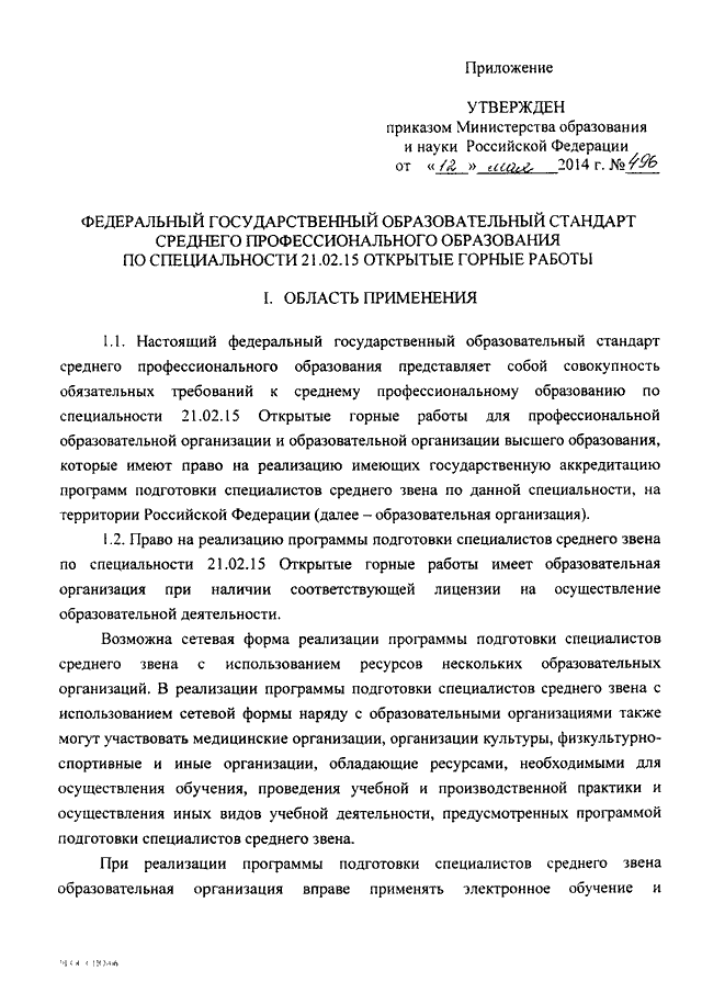 ПРИКАЗ Минобрнауки РФ от 12.05.2014 N 496