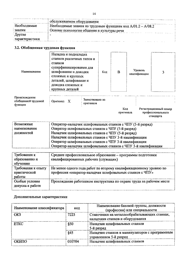 "ОБ УТВЕРЖДЕНИИ ПРОФЕССИОНАЛЬНОГО СТАНДАРТА "ОПЕРАТОР - НАЛАДЧИК ШЛИФОВАЛЬНЫХ СТАНКОВ С ЧИСЛОВЫМ ПРОГРАММНЫМ УПРАВЛЕНИЕМ"