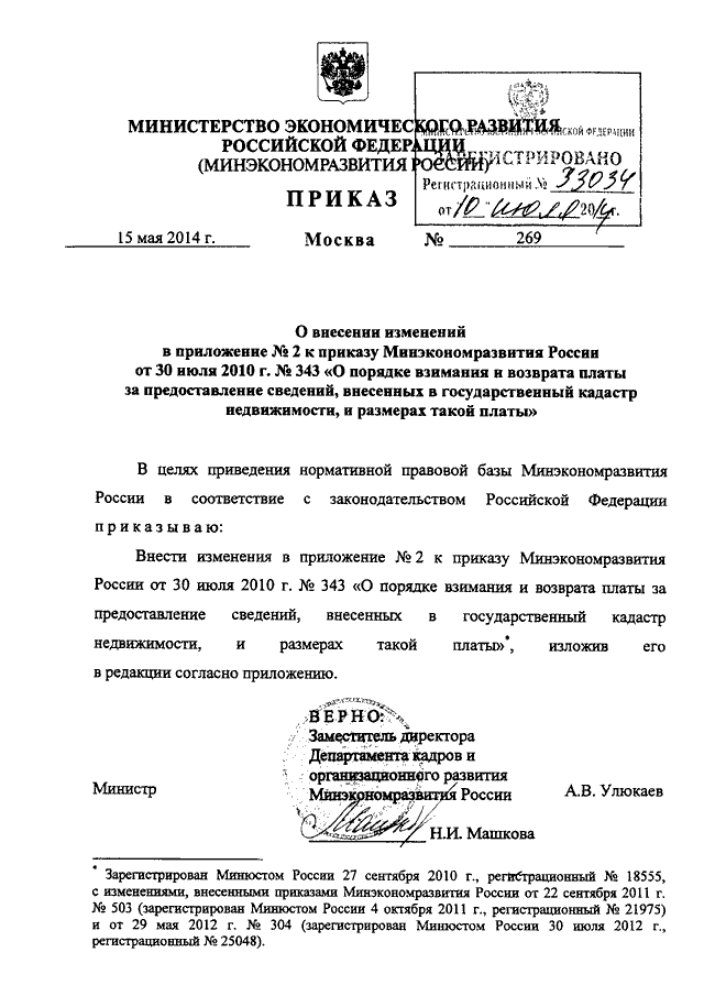 ПРИКАЗ Минэкономразвития РФ от 15.05.2014 N 269