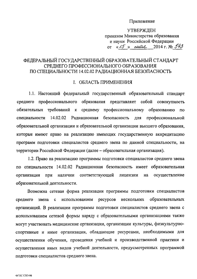 "ОБ УТВЕРЖДЕНИИ ФЕДЕРАЛЬНОГО ГОСУДАРСТВЕННОГО ОБРАЗОВАТЕЛЬНОГО СТАНДАРТА СРЕДНЕГО ПРОФЕССИОНАЛЬНОГО ОБРАЗОВАНИЯ ПО СПЕЦИАЛЬНОСТИ 14.02.02 РАДИАЦИОННАЯ БЕЗОПАСНОСТЬ"