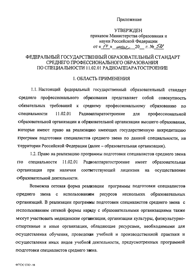 "ОБ УТВЕРЖДЕНИИ ФЕДЕРАЛЬНОГО ГОСУДАРСТВЕННОГО ОБРАЗОВАТЕЛЬНОГО СТАНДАРТА СРЕДНЕГО ПРОФЕССИОНАЛЬНОГО ОБРАЗОВАНИЯ ПО СПЕЦИАЛЬНОСТИ 11.02.01 РАДИОАППАРАТОСТРОЕНИЕ"