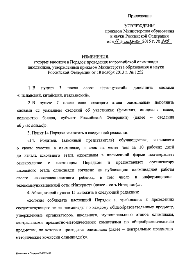ПРИКАЗ Минобрнауки РФ от 17.03.2015 N 249