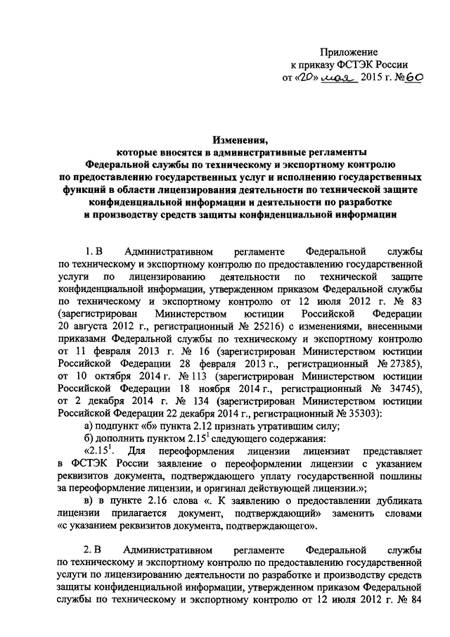 ПРИКАЗ ФСТЭК РФ от 20.05.2015 N 60