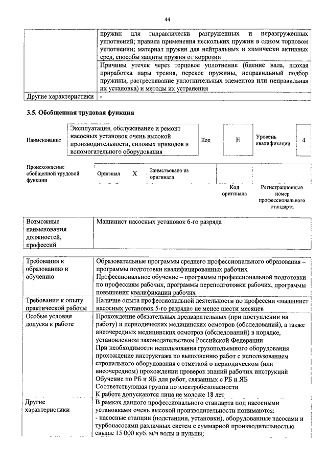 "ОБ УТВЕРЖДЕНИИ ПРОФЕССИОНАЛЬНОГО СТАНДАРТА "МАШИНИСТ НАСОСНЫХ УСТАНОВОК"