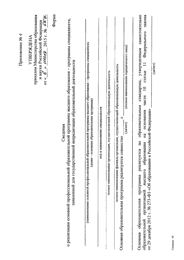 "ОБ УТВЕРЖДЕНИИ ФОРМ СВЕДЕНИЙ О РЕАЛИЗАЦИИ ОБРАЗОВАТЕЛЬНЫХ ПРОГРАММ, ЗАЯВЛЕННЫХ ДЛЯ ГОСУДАРСТВЕННОЙ АККРЕДИТАЦИИ ОБРАЗОВАТЕЛЬНОЙ ДЕЯТЕЛЬНОСТИ"