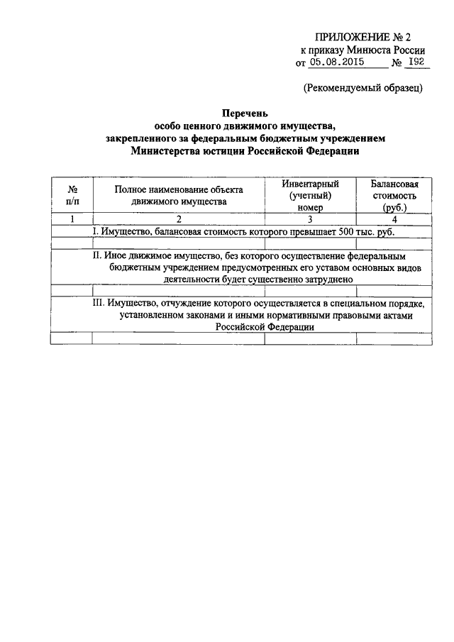 ПРИКАЗ Минюста РФ от 05.08.2015 N 192