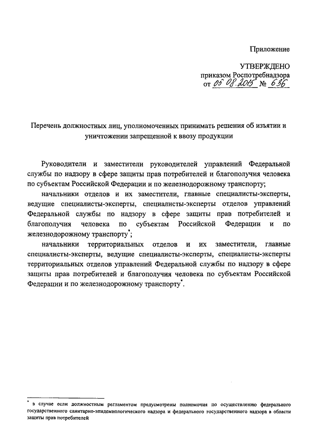 ПРИКАЗ Роспотребнадзора от 05.08.2015 N 636