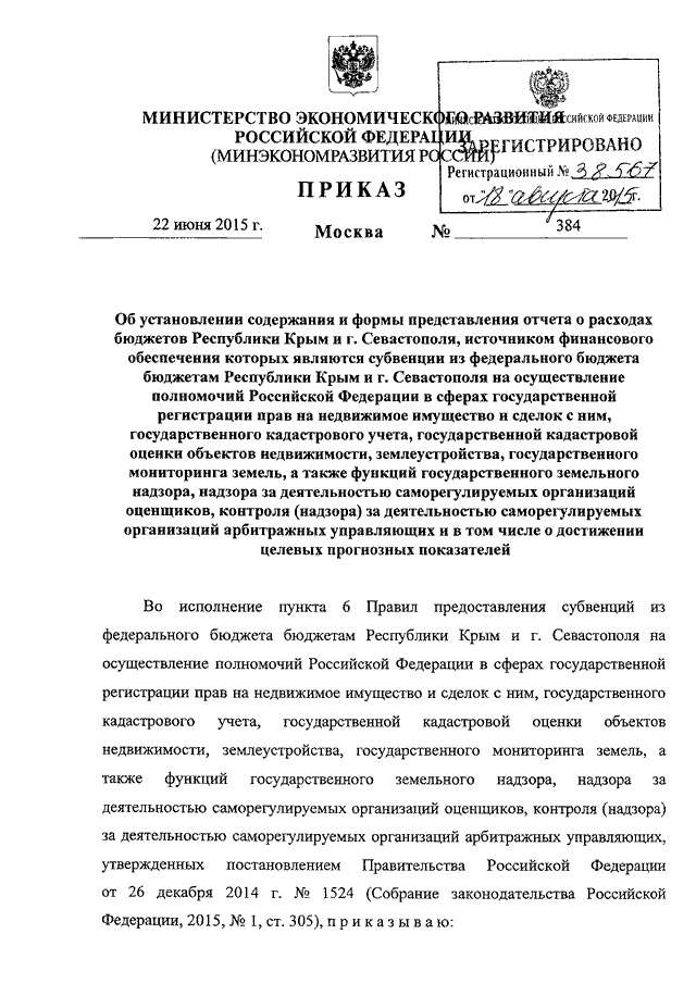 ПРИКАЗ Минэкономразвития РФ от 22.06.2015 N 384