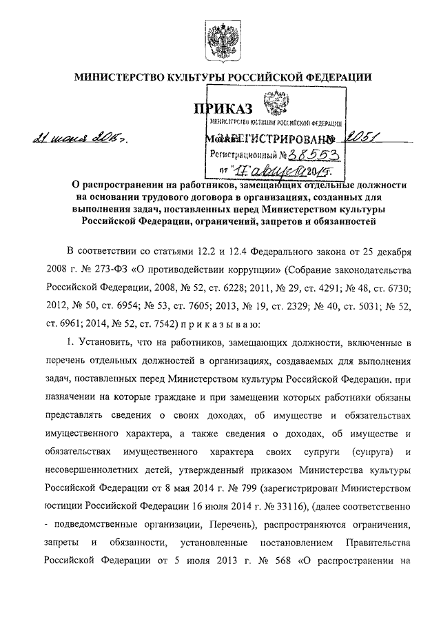 ПРИКАЗ Минкультуры РФ от 21.06.2015 N 2051