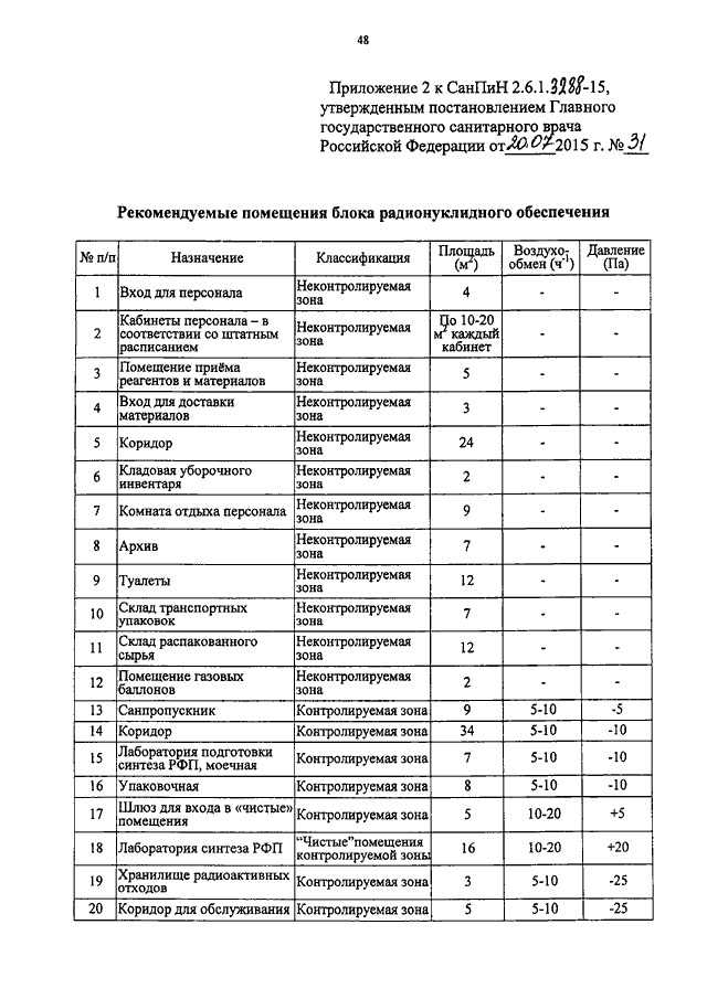 ПОСТАНОВЛЕНИЕ Главного государственного санитарного врача РФ от 20.07.2015 N 31