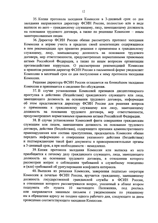 "О КОМИССИИ ФЕДЕРАЛЬНОЙ СЛУЖБЫ ИСПОЛНЕНИЯ НАКАЗАНИЙ ПО СОБЛЮДЕНИЮ ТРЕБОВАНИЙ К СЛУЖЕБНОМУ ПОВЕДЕНИЮ ФЕДЕРАЛЬНЫХ ГОСУДАРСТВЕННЫХ ГРАЖДАНСКИХ СЛУЖАЩИХ ФСИН РОССИИ И ЛИЦ, ЗАМЕЩАЮЩИХ ОТДЕЛЬНЫЕ ДОЛЖНОСТИ НА ОСНОВАНИИ ТРУДОВОГО ДОГОВОРА В ОРГАНИЗАЦИЯХ (УЧРЕЖДЕНИЯХ, ПРЕДПРИЯТИЯХ) УГОЛОВНО - ИСПОЛНИТЕЛЬНОЙ СИСТЕМЫ, СОЗДАННЫХ ДЛЯ ВЫПОЛНЕНИЯ ЗАДАЧ, ПОСТАВЛЕННЫХ ПЕРЕД ФСИН РОССИИ, И УРЕГУЛИРОВАНИЮ КОНФЛИКТА ИНТЕРЕСОВ"
