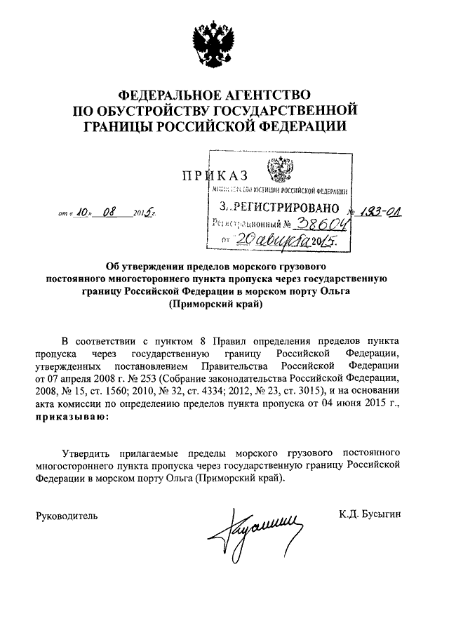 ПРИКАЗ Росграницы от 10.08.2015 N 193-ОД