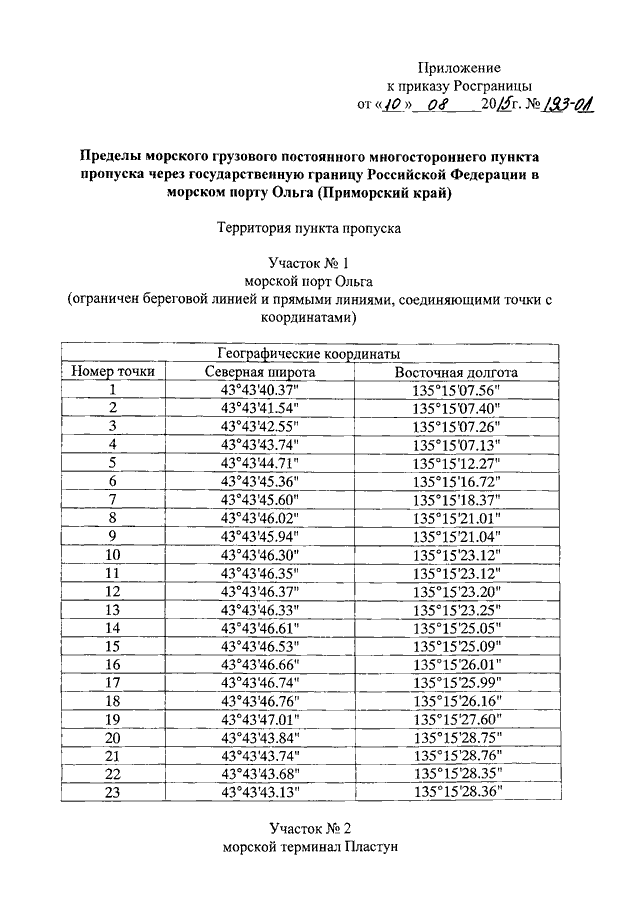 "ОБ УТВЕРЖДЕНИИ ПРЕДЕЛОВ МОРСКОГО ГРУЗОВОГО ПОСТОЯННОГО МНОГОСТОРОННЕГО ПУНКТА ПРОПУСКА ЧЕРЕЗ ГОСУДАРСТВЕННУЮ ГРАНИЦУ РОССИЙСКОЙ ФЕДЕРАЦИИ В МОРСКОМ ПОРТУ ОЛЬГА (ПРИМОРСКИЙ КРАЙ)"