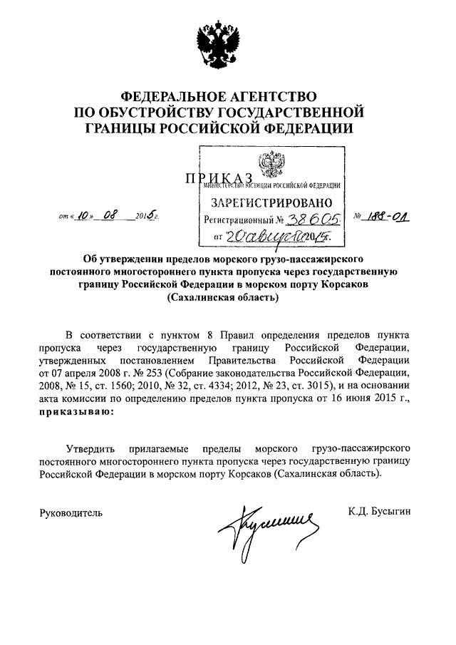 ПРИКАЗ Росграницы от 10.08.2015 N 188-ОД