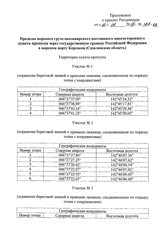 "ОБ УТВЕРЖДЕНИИ ПРЕДЕЛОВ МОРСКОГО ГРУЗО - ПАССАЖИРСКОГО ПОСТОЯННОГО МНОГОСТОРОННЕГО ПУНКТА ПРОПУСКА ЧЕРЕЗ ГОСУДАРСТВЕННУЮ ГРАНИЦУ РОССИЙСКОЙ ФЕДЕРАЦИИ В МОРСКОМ ПОРТУ КОРСАКОВ (САХАЛИНСКАЯ ОБЛАСТЬ)"