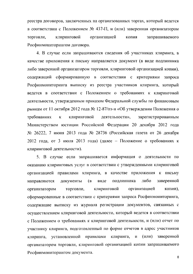 "О ПРЕДОСТАВЛЕНИИ ОРГАНИЗАТОРАМИ ТОРГОВЛИ И КЛИРИНГОВЫМИ ОРГАНИЗАЦИЯМИ В ФЕДЕРАЛЬНУЮ СЛУЖБУ ПО ФИНАНСОВОМУ МОНИТОРИНГУ ИНФОРМАЦИИ, ПРЕДУСМОТРЕННОЙ ФЕДЕРАЛЬНЫМ ЗАКОНОМ "О ПРОТИВОДЕЙСТВИИ ЛЕГАЛИЗАЦИИ (ОТМЫВАНИЮ) ДОХОДОВ, ПОЛУЧЕННЫХ ПРЕСТУПНЫМ ПУТЕМ, И ФИНАНСИРОВАНИЮ ТЕРРОРИЗМА"