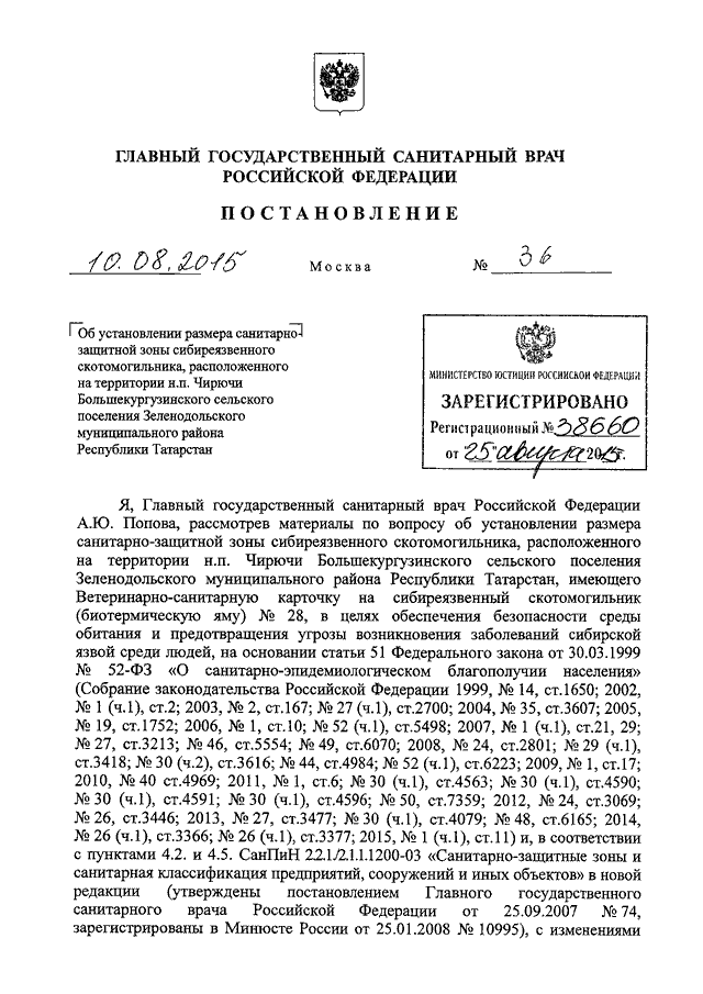 ПОСТАНОВЛЕНИЕ Главного государственного санитарного врача РФ от