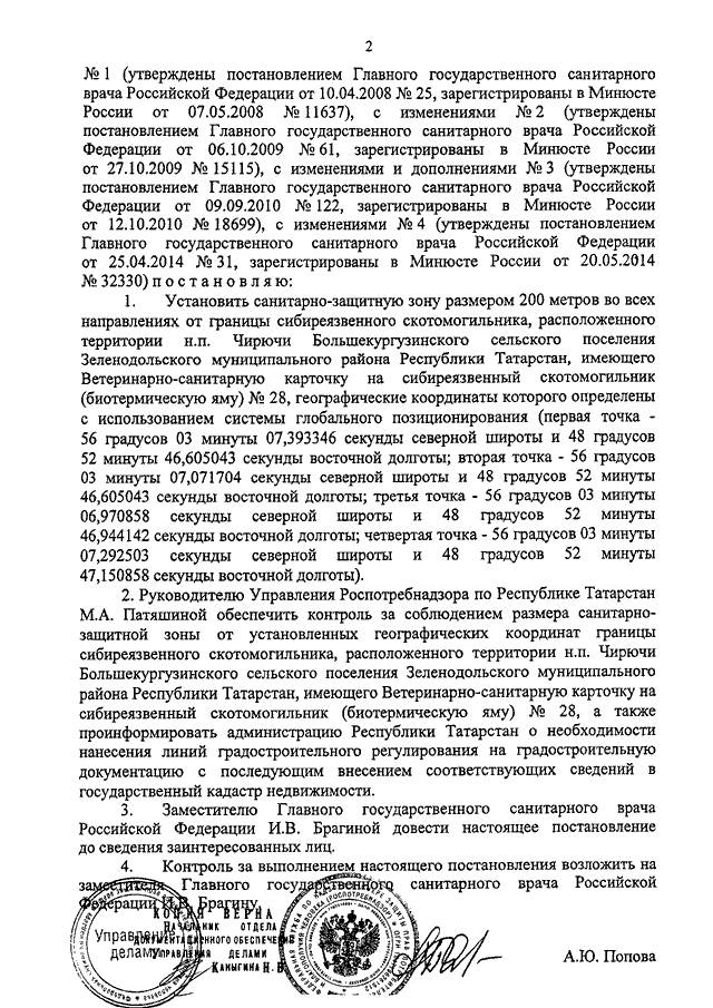 ПОСТАНОВЛЕНИЕ Главного государственного санитарного врача РФ от