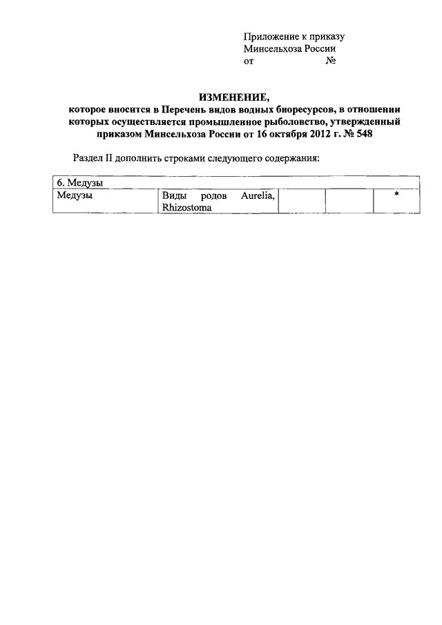 "О ВНЕСЕНИИ ИЗМЕНЕНИЯ В ПЕРЕЧЕНЬ ВИДОВ ВОДНЫХ БИОРЕСУРСОВ, В