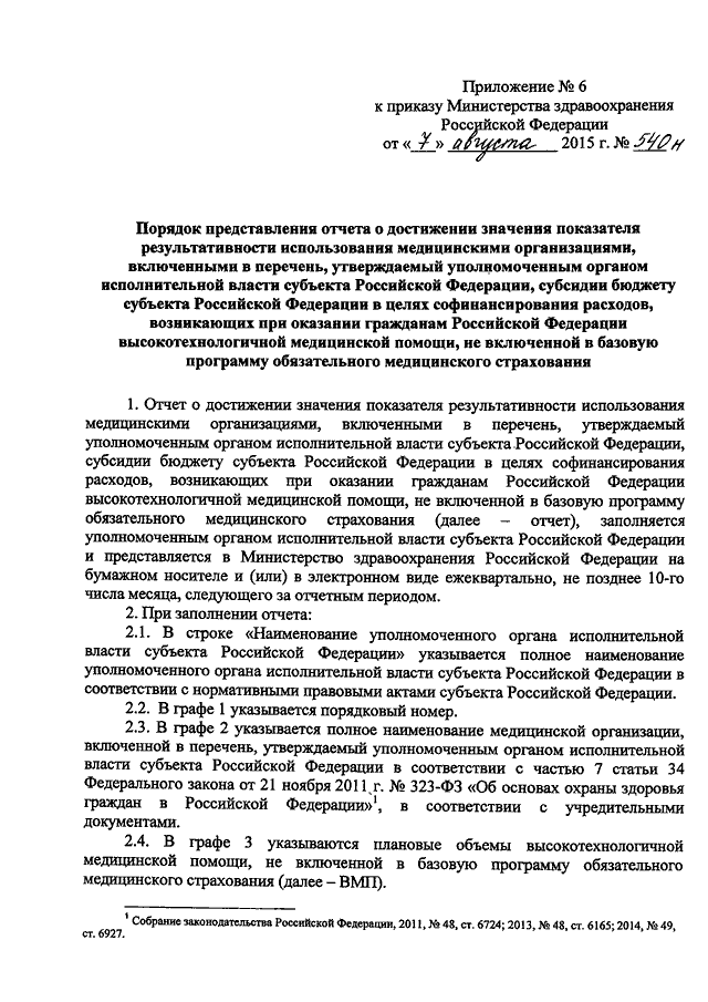 ПРИКАЗ Минздрава РФ от 07.08.2015 N 540н