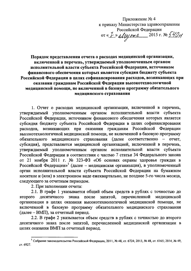ПРИКАЗ Минздрава РФ от 07.08.2015 N 540н