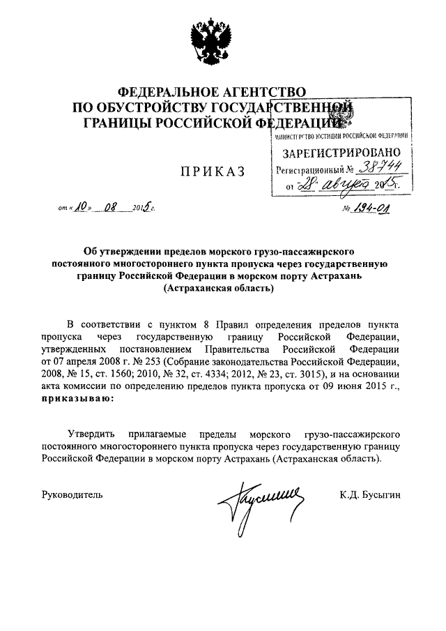 ПРИКАЗ Росграницы от 10.08.2015 N 194-ОД