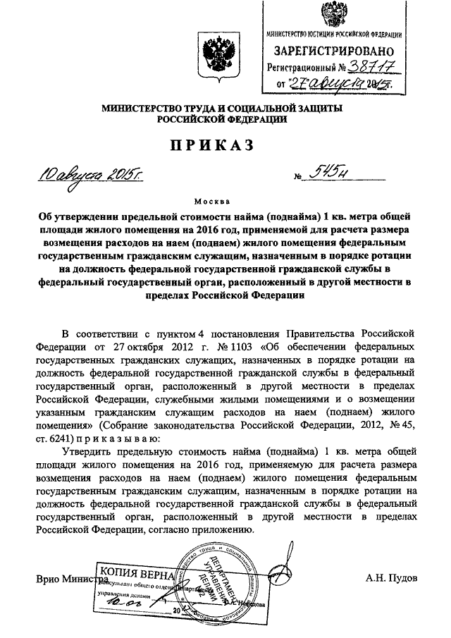ПРИКАЗ Минтруда РФ от 10.08.2015 N 545н