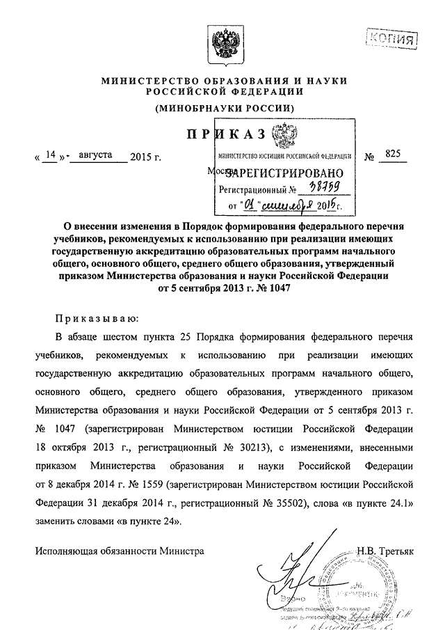 ПРИКАЗ Минобрнауки РФ от 14.08.2015 N 825