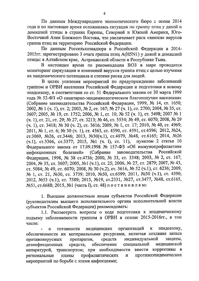 "О МЕРОПРИЯТИЯХ ПО ПРОФИЛАКТИКЕ ГРИППА И ОСТРЫХ РЕСПИРАТОРНЫХ ВИРУСНЫХ ИНФЕКЦИЙ В ЭПИДСЕЗОНЕ 2015 - 2016 ГОДОВ"
