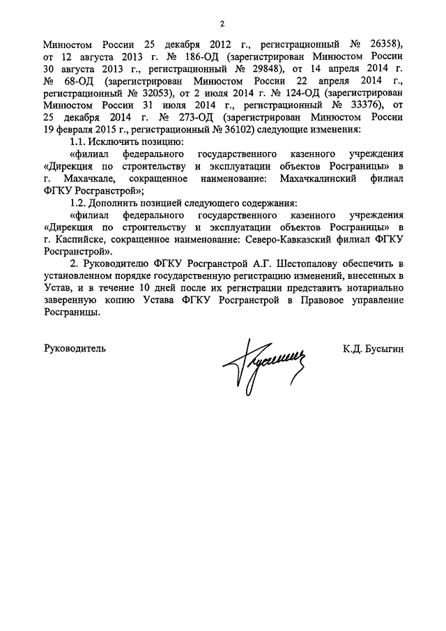 ПРИКАЗ Росграницы от 10.08.2015 N 187-ОД