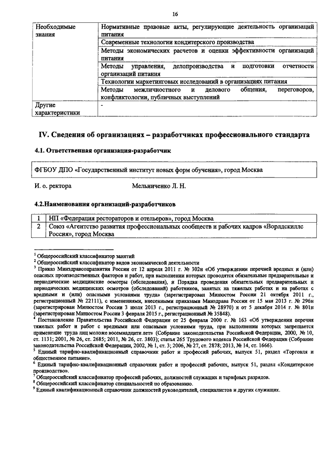 "ОБ УТВЕРЖДЕНИИ ПРОФЕССИОНАЛЬНОГО СТАНДАРТА "КОНДИТЕР"