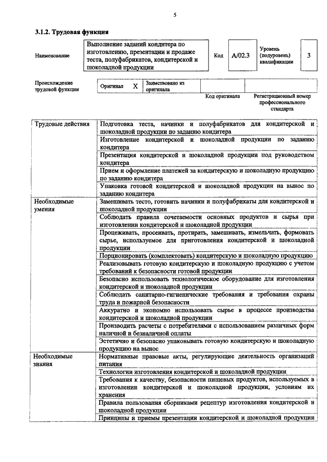"ОБ УТВЕРЖДЕНИИ ПРОФЕССИОНАЛЬНОГО СТАНДАРТА "КОНДИТЕР"