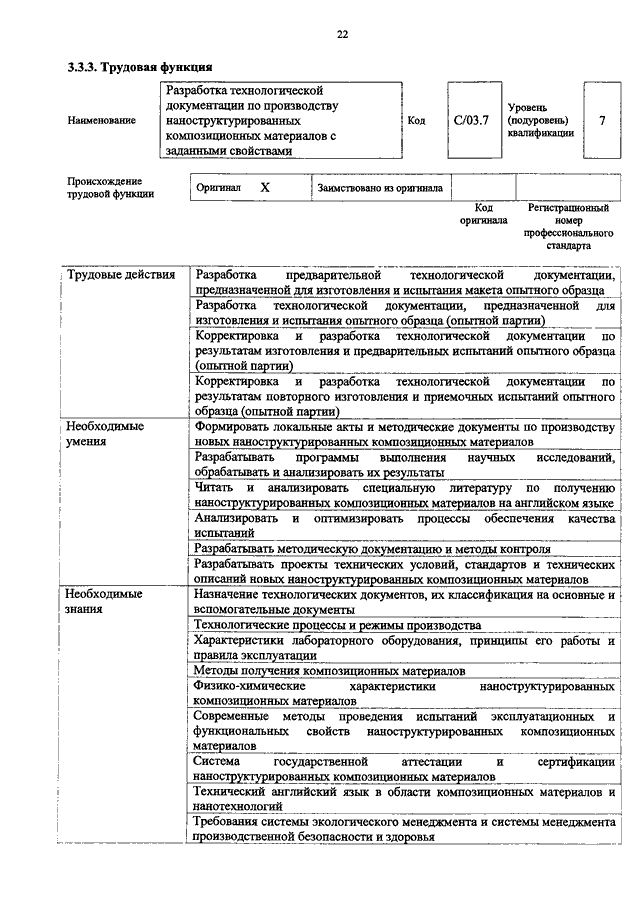 "ОБ УТВЕРЖДЕНИИ ПРОФЕССИОНАЛЬНОГО СТАНДАРТА "СПЕЦИАЛИСТ ПО РАЗРАБОТКЕ НАНОСТРУКТУРИРОВАННЫХ КОМПОЗИЦИОННЫХ МАТЕРИАЛОВ"
