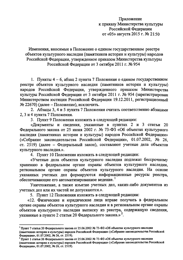 "О ВНЕСЕНИИ ИЗМЕНЕНИЙ В ПОЛОЖЕНИЕ О ЕДИНОМ ГОСУДАРСТВЕННОМ РЕЕСТРЕ ОБЪЕКТОВ КУЛЬТУРНОГО НАСЛЕДИЯ (ПАМЯТНИКОВ ИСТОРИИ И КУЛЬТУРЫ) НАРОДОВ РОССИЙСКОЙ ФЕДЕРАЦИИ, УТВЕРЖДЕННОЕ ПРИКАЗОМ МИНИСТЕРСТВА КУЛЬТУРЫ РОССИЙСКОЙ ФЕДЕРАЦИИ ОТ 3 ОКТЯБРЯ 2011 Г. N 954"