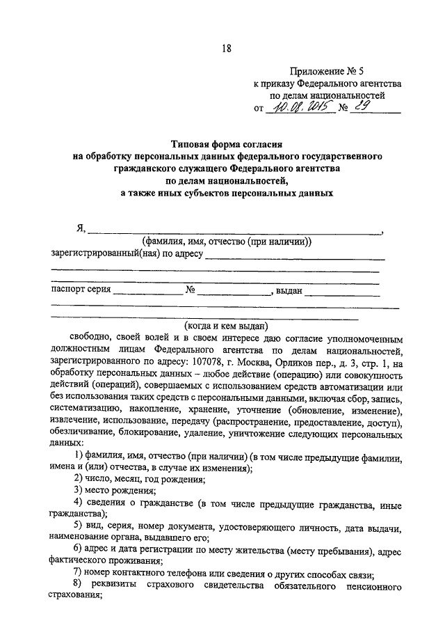 "ОБ ОБРАБОТКЕ ПЕРСОНАЛЬНЫХ ДАННЫХ В ФЕДЕРАЛЬНОМ АГЕНТСТВЕ ПО ДЕЛАМ НАЦИОНАЛЬНОСТЕЙ"