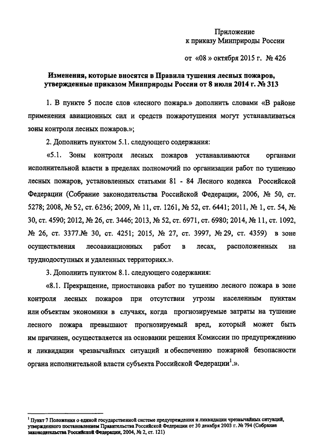 "О ВНЕСЕНИИ ИЗМЕНЕНИЙ В ПРАВИЛА ТУШЕНИЯ ЛЕСНЫХ ПОЖАРОВ, УТВЕРЖДЕННЫЕ ПРИКАЗОМ МИНПРИРОДЫ РОССИИ ОТ 8 ИЮЛЯ 2014 Г. N 313"