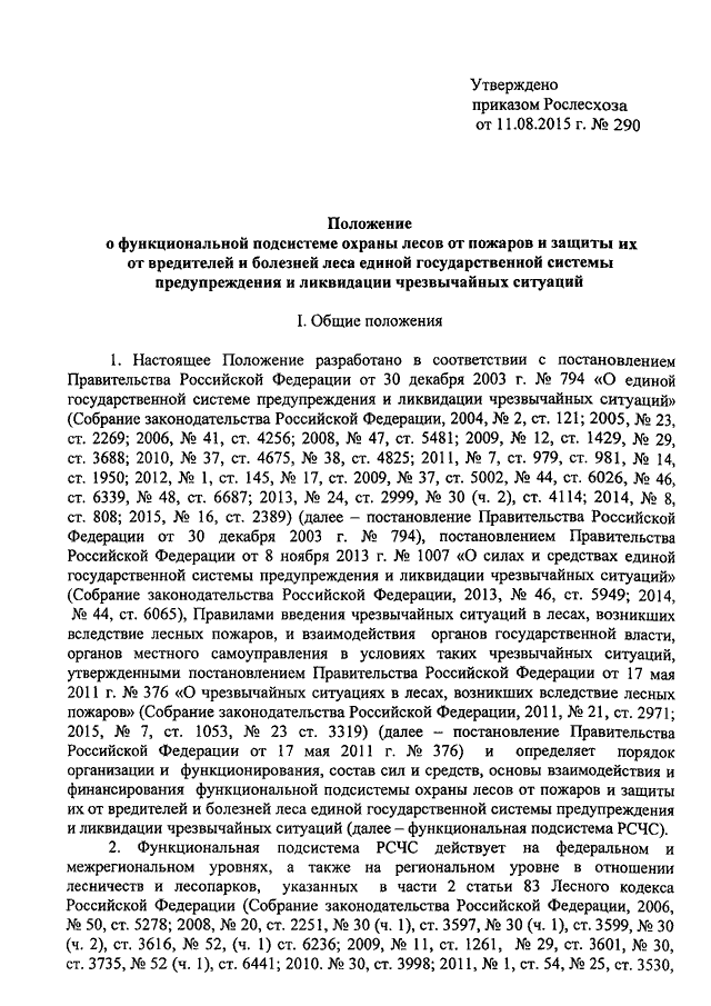 ПРИКАЗ Рослесхоза от 11.08.2015 N 290