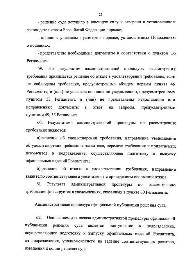 "ОБ УТВЕРЖДЕНИИ АДМИНИСТРАТИВНОГО РЕГЛАМЕНТА ПРЕДОСТАВЛЕНИЯ ФЕДЕРАЛЬНОЙ СЛУЖБОЙ ПО ИНТЕЛЛЕКТУАЛЬНОЙ СОБСТВЕННОСТИ ГОСУДАРСТВЕННОЙ УСЛУГИ ПО ПУБЛИКАЦИИ РЕШЕНИЙ СУДОВ О ДОПУЩЕННЫХ НАРУШЕНИЯХ ИСКЛЮЧИТЕЛЬНЫХ ПРАВ"