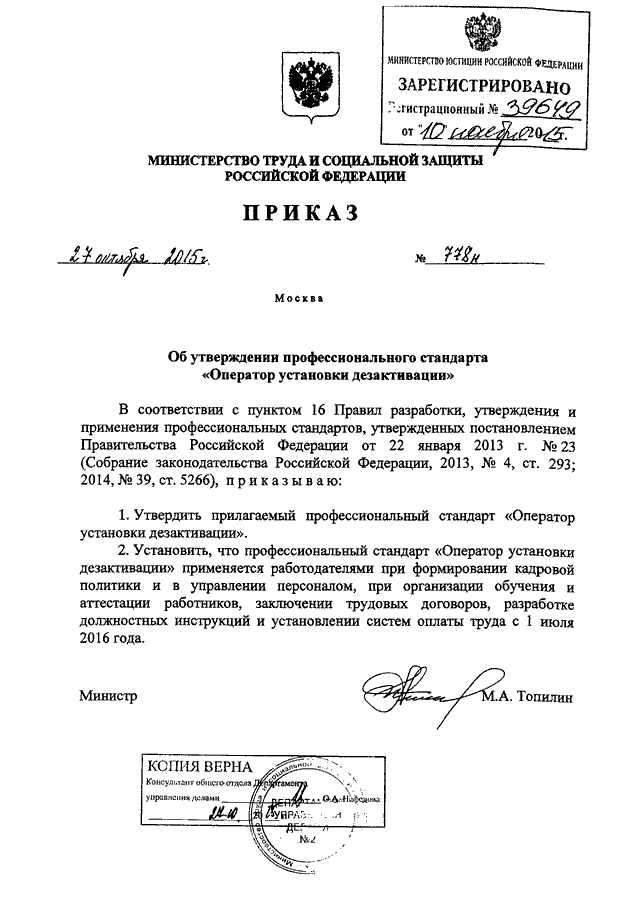 ПРИКАЗ Минтруда РФ от 27.10.2015 N 778н