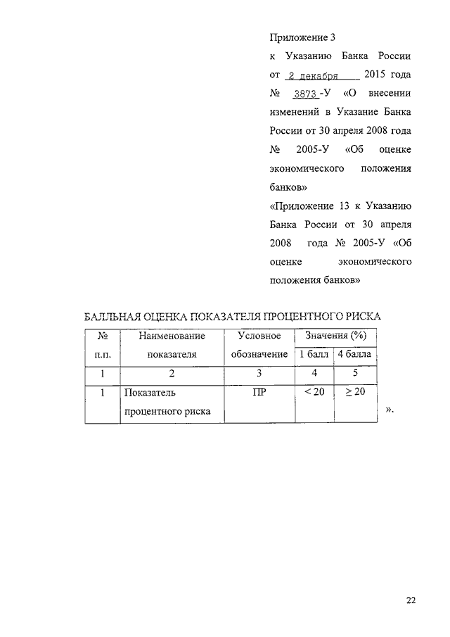"О ВНЕСЕНИИ ИЗМЕНЕНИЙ В УКАЗАНИЕ БАНКА РОССИИ ОТ 30 АПРЕЛЯ 2008 Г. N 2005-У "ОБ ОЦЕНКЕ ЭКОНОМИЧЕСКОГО ПОЛОЖЕНИЯ БАНКОВ"
