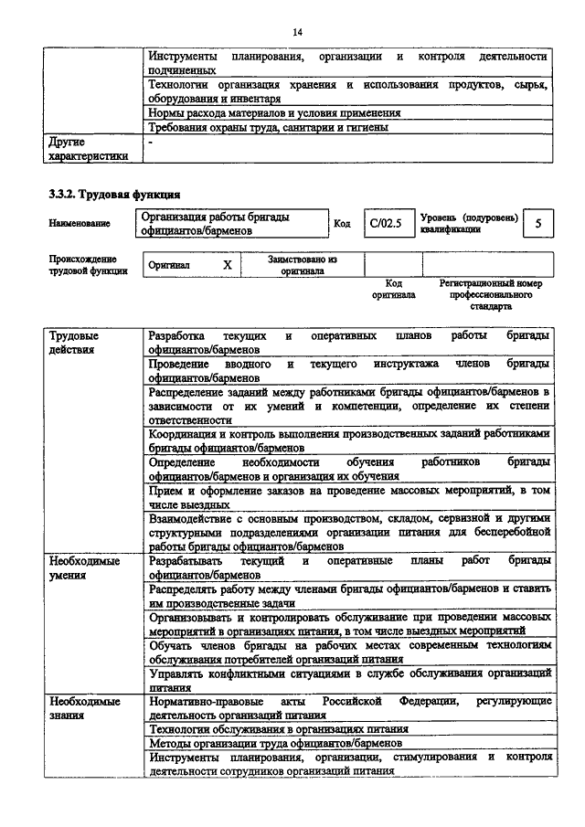 "ОБ УТВЕРЖДЕНИИ ПРОФЕССИОНАЛЬНОГО СТАНДАРТА "ОФИЦИАНТ / БАРМЕН"