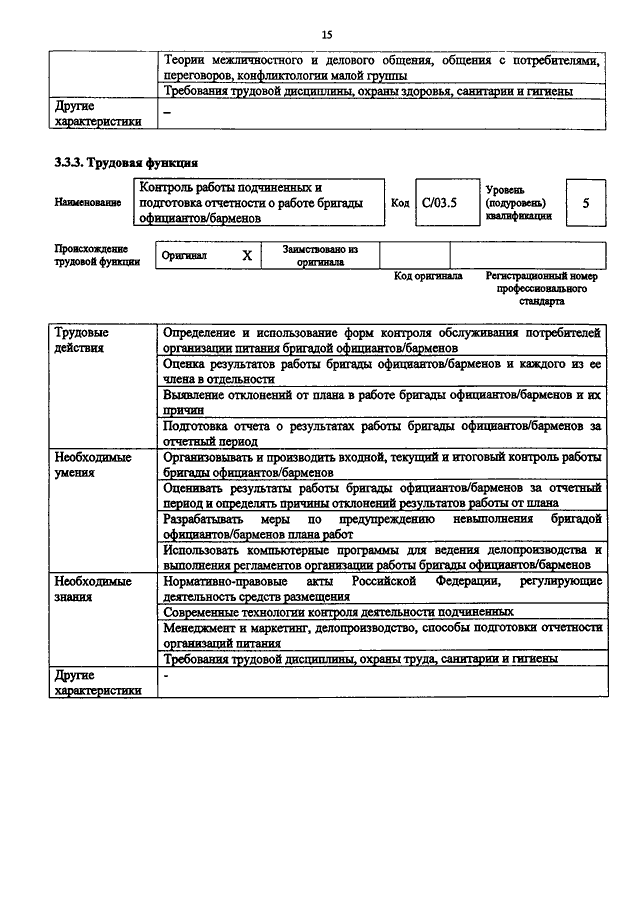 "ОБ УТВЕРЖДЕНИИ ПРОФЕССИОНАЛЬНОГО СТАНДАРТА "ОФИЦИАНТ / БАРМЕН"