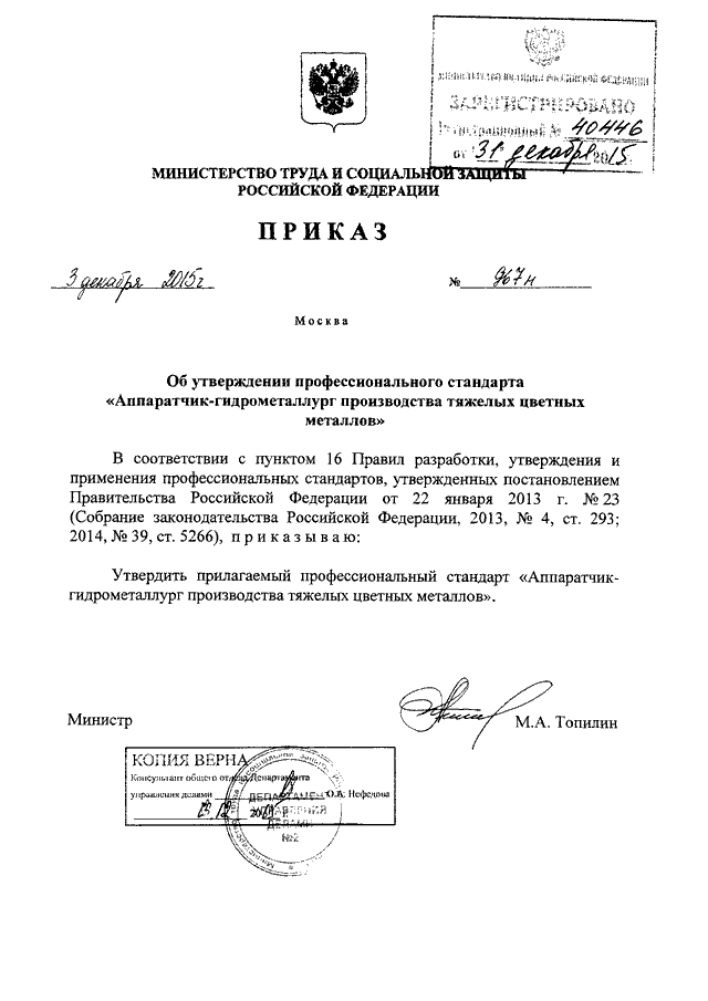 ПРИКАЗ Минтруда РФ от 03.12.2015 N 967н