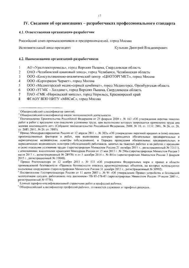 "ОБ УТВЕРЖДЕНИИ ПРОФЕССИОНАЛЬНОГО СТАНДАРТА "АППАРАТЧИК - ГИДРОМЕТАЛЛУРГ ПРОИЗВОДСТВА ТЯЖЕЛЫХ ЦВЕТНЫХ МЕТАЛЛОВ"