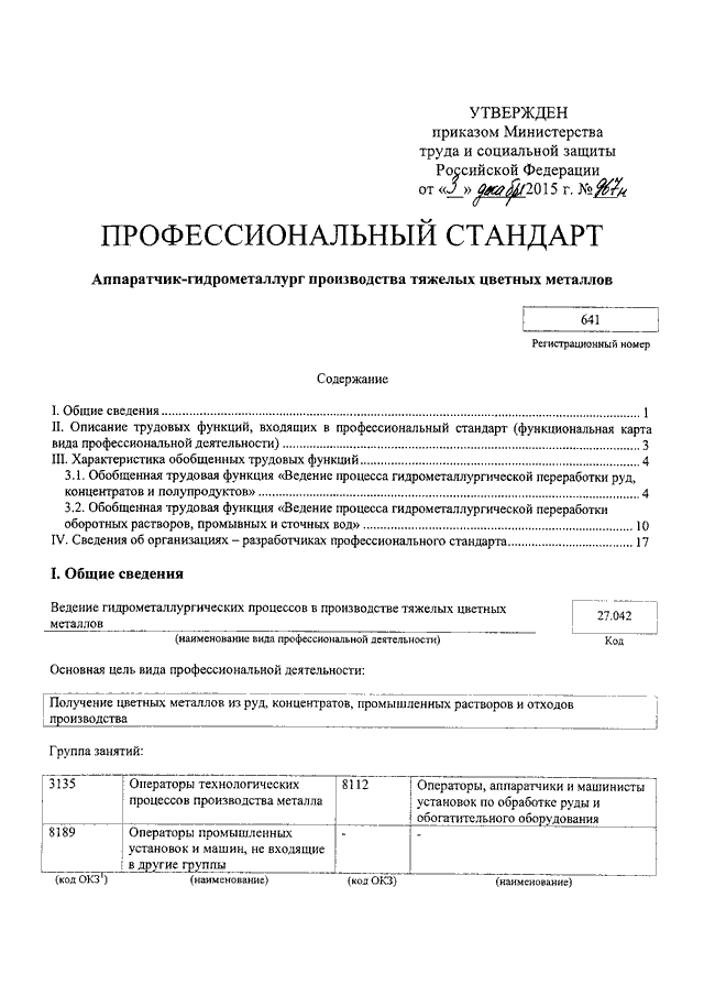 "ОБ УТВЕРЖДЕНИИ ПРОФЕССИОНАЛЬНОГО СТАНДАРТА "АППАРАТЧИК - ГИДРОМЕТАЛЛУРГ ПРОИЗВОДСТВА ТЯЖЕЛЫХ ЦВЕТНЫХ МЕТАЛЛОВ"