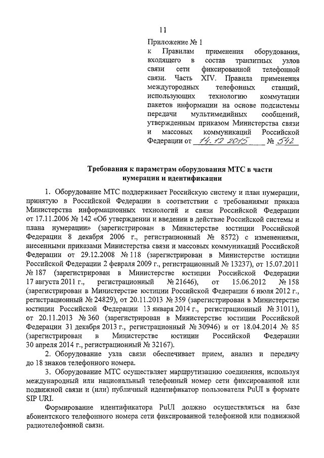 ПРИКАЗ Минкомсвязи РФ от 14.12.2015 N 542